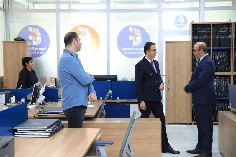 Ziyarette Karaman, Tapu ve Kadastro Bölge Müdürü Murat Çalık’tan Diyarbakır’da Tapu ve Kadastro Bölge Müdürlüğü’ne bağlı 37 Tapu Müdürlüğü’nde aynı anda ilk kez hayata geçirilen Tapu ve Elektronik Kimlik Doğrulama Sistemi ve kadastro hizmetleri hakkında genel bilgi aldı.