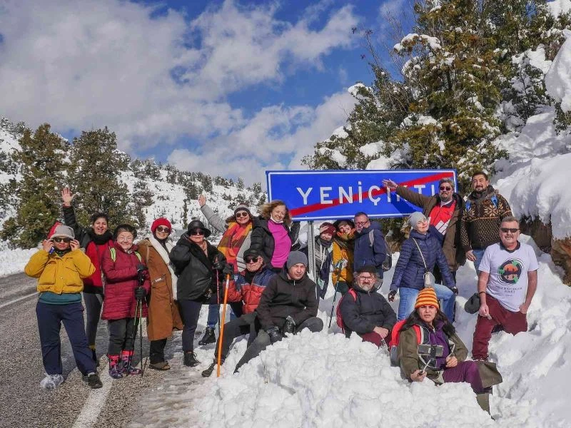 Mersin’in Silifke ilçesinde Poyraz Doğa Gezginleri üyeleri ilçenin yüksek kesimlerine yağan kar yağışı sonrası yürüyüş etkinliği düzenledi.