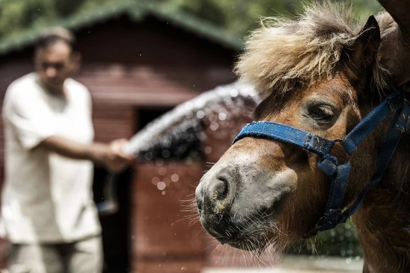 Bakıcıların serinletme banyosu yaptırdığı hayvan gruplarından biri de midilliler. Atların minyonları olan midilliler hortumla banyo yaptırılarak serinletiliyor. Bakıcıların kendilerini serinletmek için geldiği anları sabırsızlıkla bekleyen midilliler, suyla oynamayı ve serinlemeyi çok seviyor. Midillilerin buzlu yemekten hoşlandığı meyve ise havuç.