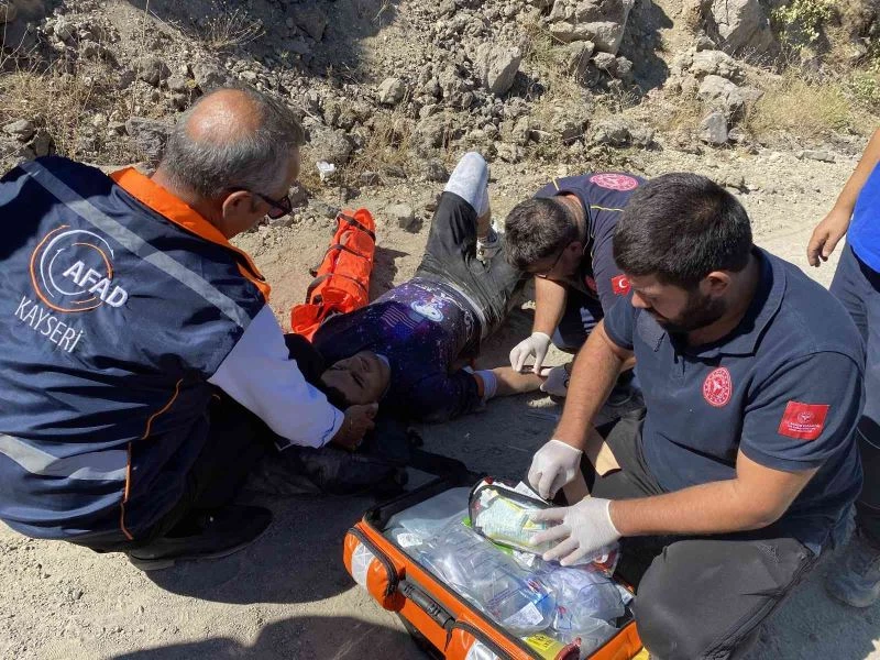 Kayseri’nin Hacılar ilçesinde dağlık alanda bisikletiyle kaza yaparak yaralanan genci, ekipler kurtardı.