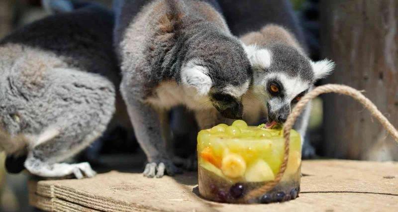 Buzlu yiyecek kalıplarında hayvanın türüne göre et veya çeşitli meyvelerle yiyeceklerin servis edildiğini belirten İzmir Doğal Yaşam Parkı Müdürü Şahin Afşin, “Hayvanlar bu sayede hem sağlıklı bir şekilde besleniyor hem de serinliyor. Lemurlar, ayılar ve sırtlanlar bu soğuk ziyafetin tadını doyasıya çıkarırken, Bengal kaplanı daha çok yüzerek serinlemeyi tercih ediyor. Fil ailesi ise buzlu meyvelerini afiyetle yedikten sonra soğuk suyun altında keyif yapıyor. Mutfağımızda biyologlar tarafından özel menüler oluşturuluyor. Yazın ziyaretçiler ’Tropik Merkez’i gezmeyi tercih ediyor. Çünkü yaz ve kış burada sıcaklık sabit ve 26 derece” dedi.