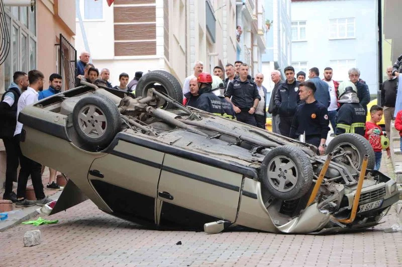 Olay, Canik ilçesi Karşıyaka Mahallesi’nde meydana geldi. Edinilen bilgiye göre, Onur Ç. idaresindeki 55 AFS 617 plakalı otomobil sağa dönerek Malkoçoğlu Sokak’a girecekken kaza yaşandı. Dönüşü alamayan otomobil hızla kaldırıma çıkarak doğalgaz kutusuna çarptı. Yoldan yüksekte kalan kaldırım ve çarpmanın etkisiyle otomobil takla attı.