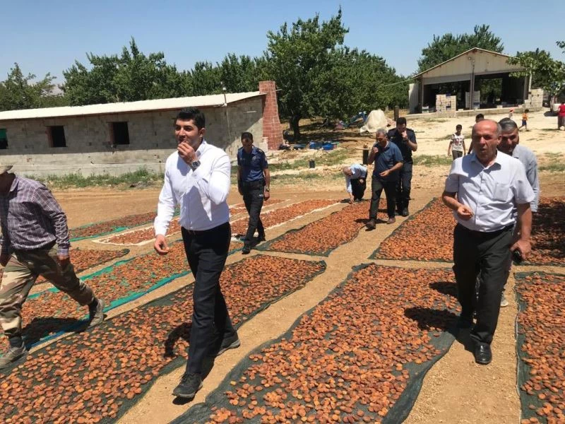 İlçenin önemli ekonomik zirai gelirlerinden olan Kayısıda hasadın devam etmesi nedeniyle Kaymakam Mehmet Kılıç, beraberinde İlçe Jandarma Komutanı Onur Kırcaer, ilçe Emniyet Müdür Vekili Yunus Emre Karadağ, ilçe Tarım ve Orman Müdürü İsmet Çılğın ile birlikte Kelhalil Mahallesi Doğanlar mezrasındaki kayısı üreticilerini ziyaret etti.