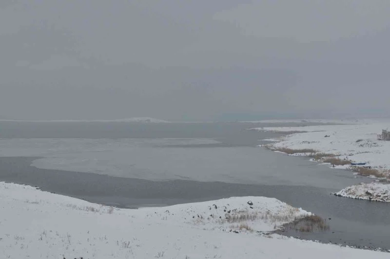Deniz seviyesinden bin 959 metre yükseklikteki Çıldır Gölü’nün yüzeyi, hava sıcaklığının geceleri sıfırın altında 12 dereceye kadar düşmesi nedeniyle kısmen dondu.
