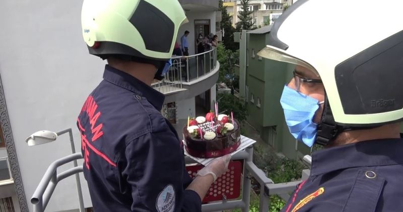 Adıyaman’da, itfaiye ekiplerinin engelli bir genç kıza hazırladıkları doğum günü sürprizi herkesi şaşırttı. İtfaiye ekipleri hazırladıkları doğum günü pastasını kapıdan değil balkona uzattıkları itfaiye merdiveniyle getirdi.