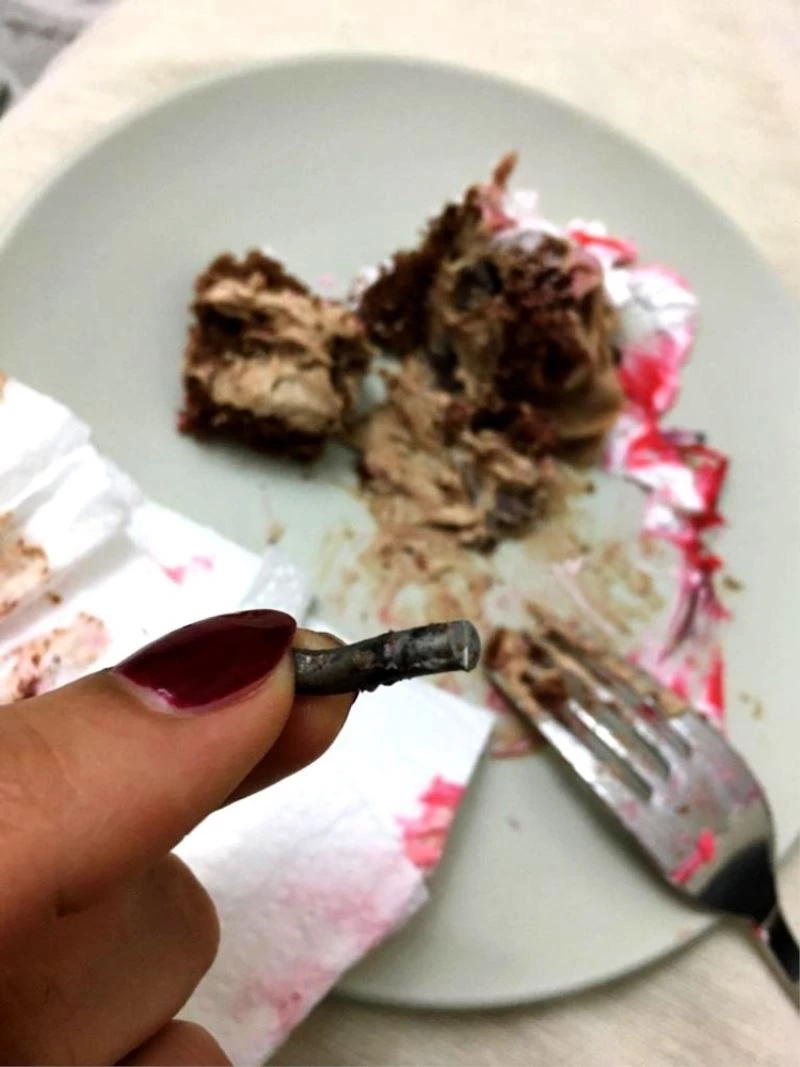 Adana’da 6 yaşındaki kızları Mürüvvet için Kuruköprü Mahallesi Özler Caddesi üzerindeki bir pastanede doğum günü pastası yaptıran aile, pastayı servis ettikten sonra kötü bir sürprizle karşılaştı. Pastanın içinde neye ait olduğu belli olmayan 3 cm uzunluğunda bir demir parçası çıktı.