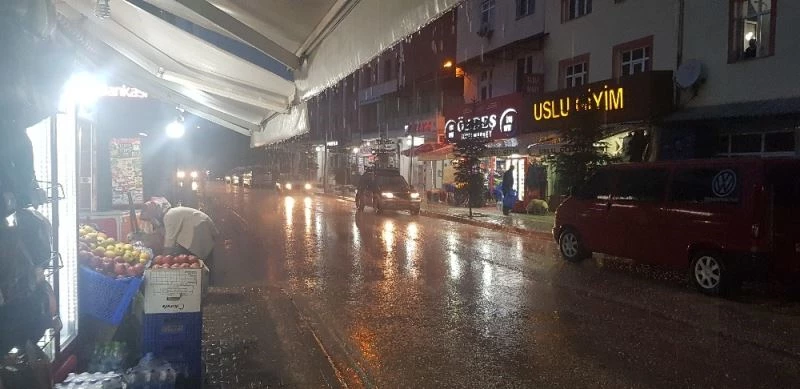Eflani ilçesinde gün boyu etkili olan yağmur, akşam saatlerinde yerini doluya bıraktı. Fındık büyüklüğündeki dolu nedeniyle yerler beyaza büründü. O anlar ise vatandaşlar tarafından cep telefonu ile kaydedildi.