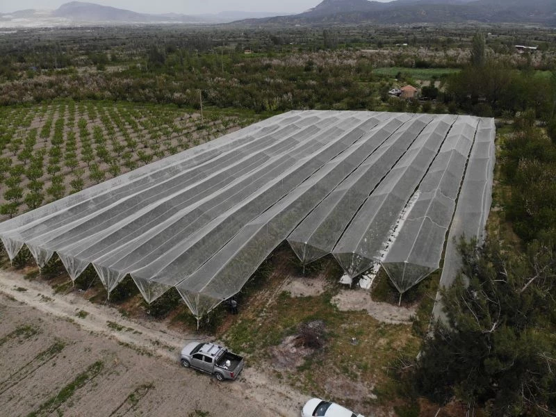 Denizli’nin Honaz ilçesinde yaşayan İbrahim Sarıkaya’nın yaklaşık 4 dönümlük alanın üzerinde bulunan kiraz ağaçları geçen sene yağmur ve dolu yağışı sonrası çatlayarak büyük oranda zarar gördü. 50 bin TL getiri olan tarlasından yaklaşık 3 bin’ TL’lik ürün satabilen Sarıkaya, zarar sonrası araştırmalara başladı. Dünya geleninde bazı çiftçilerin dolu filesi kullanarak önlem aldığını öğrenen Sarıkaya, 4 dönümlük arazisi için bu yönteme başvurdu. Dolu filesi alan Sarıkaya, parçaları iple birleştirerek arazisinin üzerini tamamen fileyle kapladı. Tarlanın yanlarına direk kurarak desteklenen fileyi gören vatandaşlar işe yarayıp yaramam konusunda tereddüt etse de, yağan etkili dolu yağışı sonrası Sarıkaya’nın kirazlarında file nedeniyle hiçbir etkilenme olmadı. Kirazların erkenci olmasına rağmen çiçek kısmında bile zarar olmazken, bölgede ise bu sistemi sadece Sarıkaya kullanıyor. Bu sene dolu filesi sayesinde tarlasında rekoltesinin yüksek olacağını belirten Sarıkaya, örtülü alan ile açık alanın arasında sıcaklık farkının da olduğunu ifade etti.