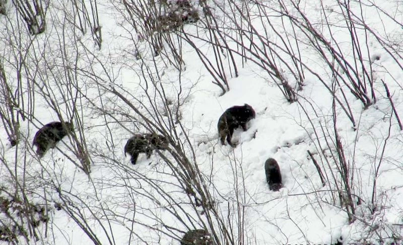 Yetişkinleri bir buzağı kadar büyük olan, yanlarında yavrularıyla birlikte sayıları 15’i bulan yaban domuzları, görenleri korkutuyor. Bölge halkı yaban domuzlarına karşı önlem alınmasını istedi.