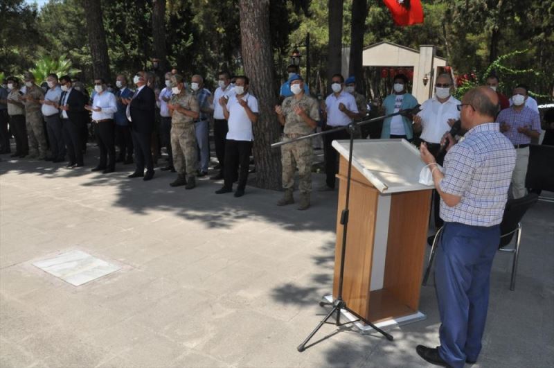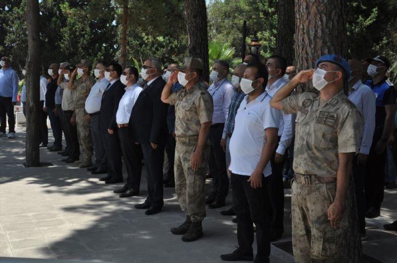 Dörtyol ilçesindeki sehitlikte, saygi durusunda bulunuldu ve Istiklal Marsi okundu.