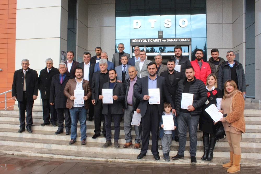 Dörtyol Ticaret ve Sanayi Odası Meclis Salonunda, Doğu Akdeniz Abigemin düzenlediği belge teslim töreninde Dörtyol Kaymakamı Sayın Murat Bulacak, Hatay Büyükşehir Belediyesi Dörtyol, Erzin ve Payas Bölge Koordinatörü Tansel Demirel, Dörtyol Esnaf ve Sanatkârlar Odası Başkanı Ahmet Bölükbaşı, Dörtyol Esnaf ve Sanatkârlar Kredi Kefalet Kooperatif Başkanı Ali Gün, Dörtyol Şoförler ve Otomobilciler Odası Başkanı Yavuz Çelebi, Dörtyol Ticaret ve Sanayi Odası Başkanı Ercan yıldırım ve Yönetim Kurulu üyeleri ile sınava katılan katılımcılar törene katılım gösterdi.