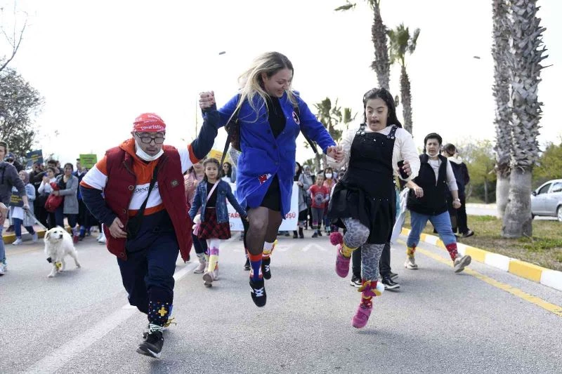 Muratpaşa Belediyesi Adalya Vakfı Özel Gereksinimli Bireyler Sosyal Destek Yaşam Merkezi’nin down sendromlu öğrencileri, 21 Mart Dünya Down Sendromu Farkındalık Günü için süsledikleri çoraplarla katıldıkları ‘Neşeli Ayaklar’ farkındalık yürüyüşünde bir kez daha down sendromunun hastalık değil genetik farklılık olduğu mesajını verdi.