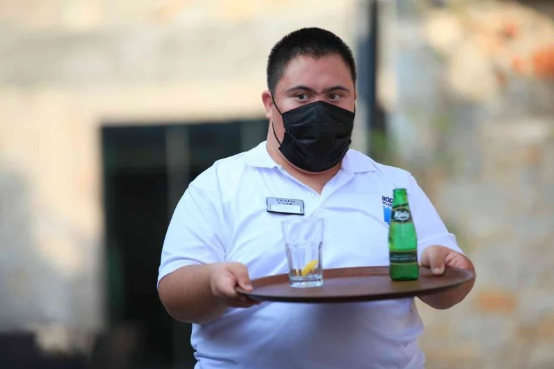 Muğla’nın Bodrum ilçesinde down sendromlu Yiğit Külahlı, stajyer olarak işe başladığı Trafo Bodrum’da çalışma azmiyle herkese örnek oluyor.