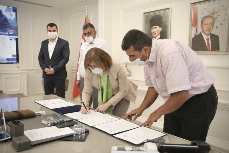Gaziantep Büyükşehir Belediye Başkanı Fatma Şahin ile Gaziantep Düğün Salonları İşletmecileri Derneği Başkanı Ali Kemal Şahin arasında eğitim protokolü imzalandı.