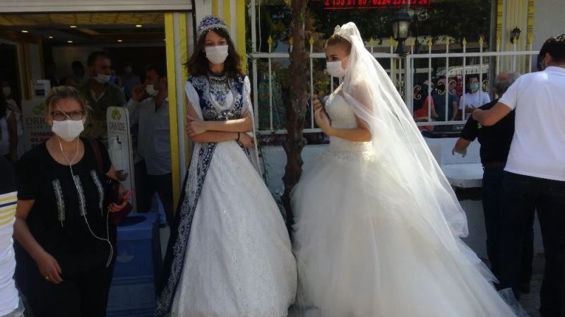Korona virüsü tedbirleri kapsamında Bursa dahil 14 ilde sünnet düğün ve benzeri organizasyonların yasaklanmasına ve düğünlerin 1 saat ile kısıtlandırılmasına Düğün Salonları ve Organizasyoncuları Derneği’nden tepki geldi. Bugün düğünü olan iki genç kız, eyleme gelinlikleriyle destek verdi.