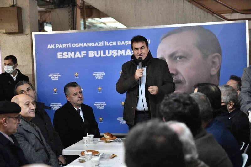 Osmangazi Belediye Başkanı Mustafa Dündar, AK Parti Osmangazi İlçe Başkanlığı tarafından düzenlenen etkinlikte Gençosman Ayakkabıcılar Çarşısı esnafı ile bir araya geldi.