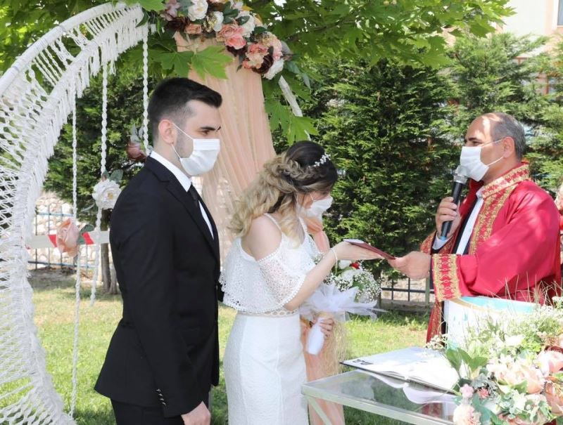 Korona virüs önlemleri kapsamında 1 Haziran itibariyle normalleşme adımlarının hayata geçirilmesi ile evlenecek olan çiftlerin düğün hazırlıkları da başladı. Kocaeli’nin Körfez ilçesinde de çiftler, alınan sosyal mesafe önlemleri ile dünya evine giriyor. Körfez Belediyesi, yeni normal hayata geçilmesinin ardından Türkiye’de bir ilki gerçekleştirdi. Binlerce çiftin hayali olan evlilik, kır düğünü konseptiyle vatandaşların hizmetine sunuldu. Körfez Belediye Başkanı Şener Söğüt ise mutlu günlerinde çiftleri yalnız bırakmadı.