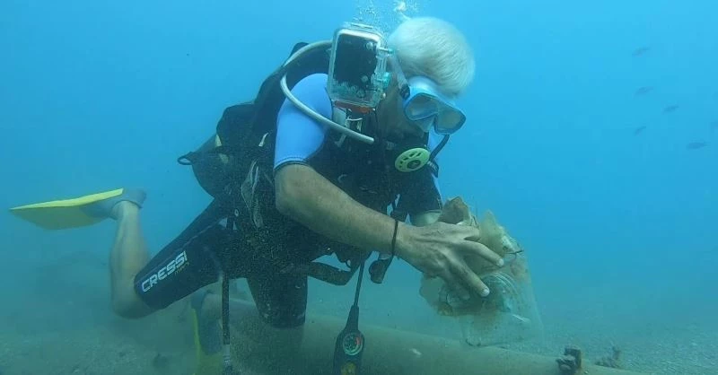 Akdeniz Üniversitesi(AÜ) Su Ürünleri Fakültesi Öğretim Üyesi Prof. Dr. Mehmet Gökoğlu, dünyaca ünlü Konyaaltı Sahili’ne yaptığı 10 dakikalık dalışta, çoğunluğu plastik maddeden oluşan iki torba çöp çıkardı.