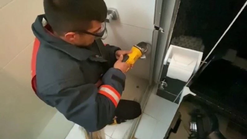 Adrese giden itfaiye ekipleri, duşa kabinin alüminyum kısmını keserek kuşu bulunduğu yerden sağlıklı bir şekilde çıkartarak, sahibine teslim etti.
