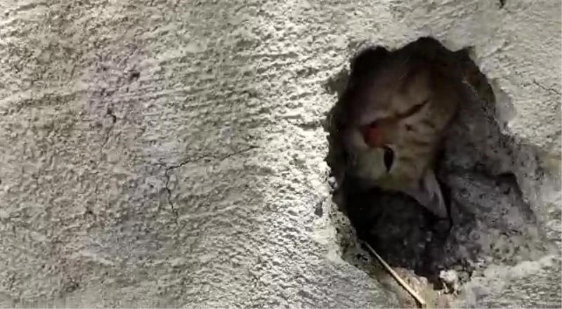 Balyozla duvarın kırılmasıyla kedi bulunduğu yerden kurtarıldı.