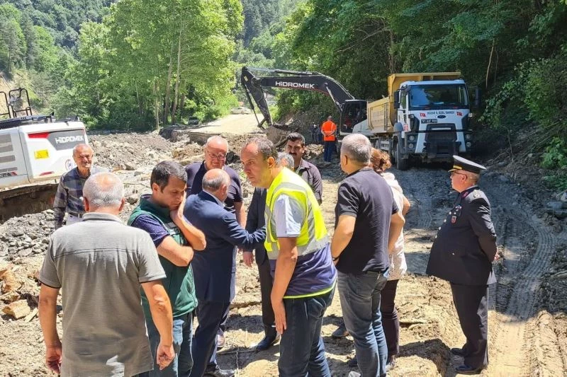 DÜZCE – Düzce’de Hazarin ayının sonunda yaşanan sel afetinin yaraları ekipler tarafından sarılmaya devam ediyor. Selde zarar gören yollar yapılıyor.