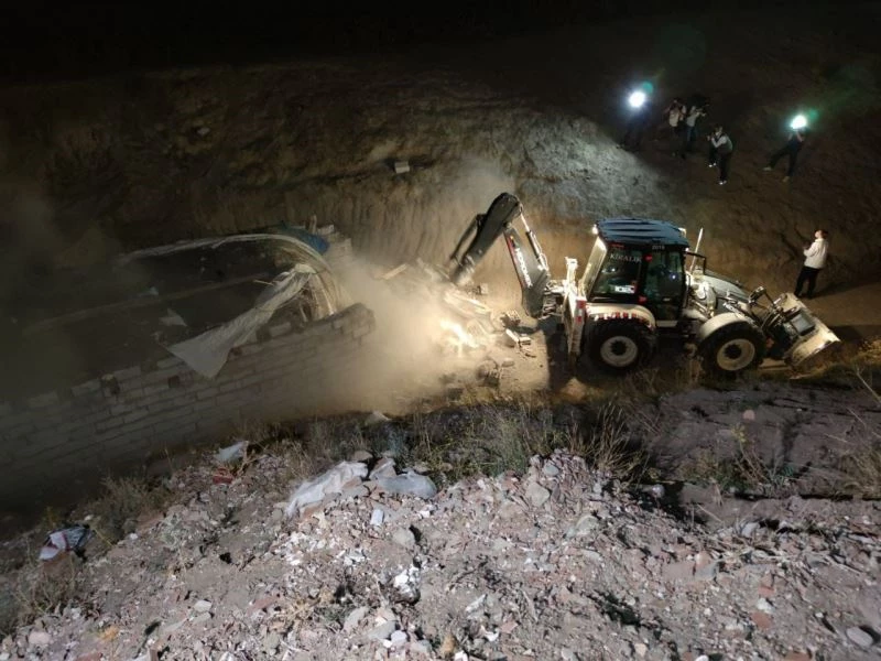 Van’da göçmen kaçakçılarının faaliyetlerinin engellenmesi amacıyla operasyonlar düzenleyen polis ekiplerince tespit edilen ve “şok ev” diye tabir edilen metruk yapı yıktırıldı.