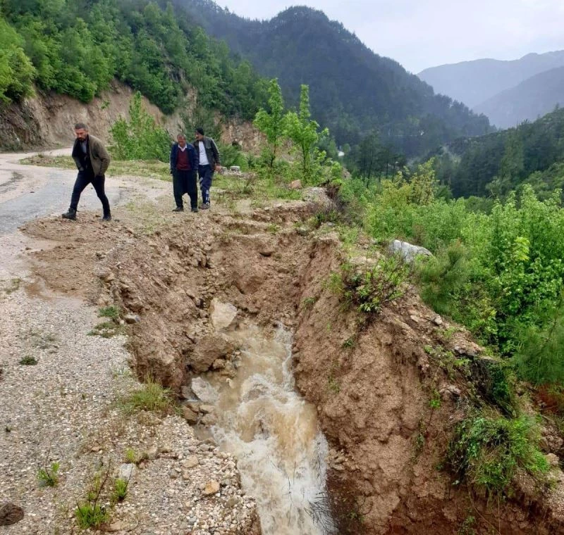 Osmaniye’nin Düziçi ilçesinde etkili olan sağanak yağış nedeniyle Çatak yolu Çamkonuşu mevkiinde meydana gelen heyelanda içme suyu ana boru hattı zarar gördü. Ekipler tarafından patlayan borunun onarılması için çalışmalar başlatılırken aktif olan kuyu suyundan ilçeye su verileceği belirtildi.