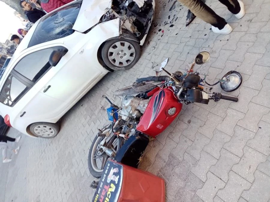 Osmaniye Düziçi ilçesinde otomobil ile motosikletin çarpışması sonucu meydana gelen trafik kazasında 1 kişi ağır yaralandı. Kaza anı bir iş yerinin güvenlik kameralarına yansıdı.