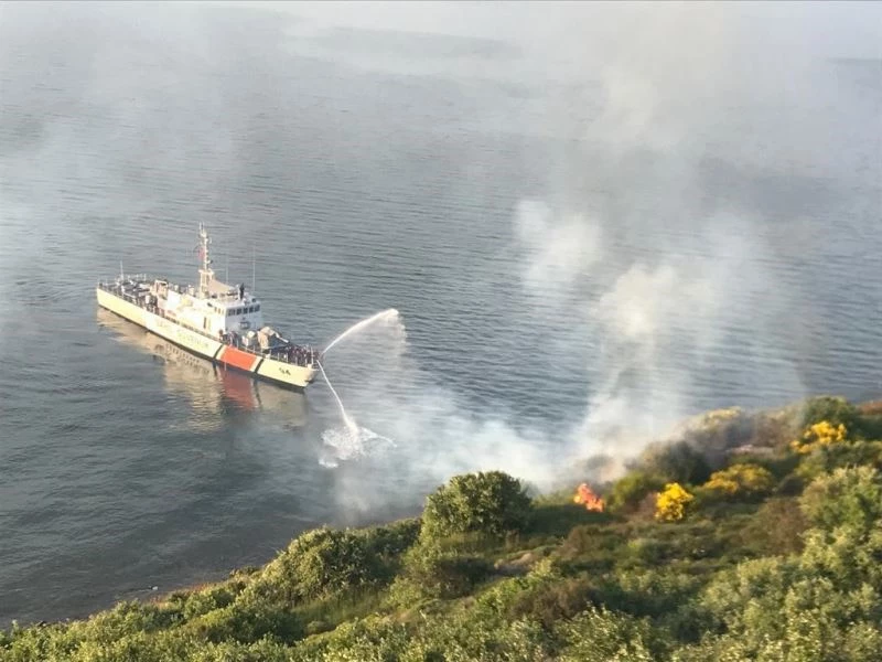 Erdek körfezinde yer alan Edincik Mahallesi Şirin Çavuş Mevkii’nde makilik alanda alevler altında kaldı. Yangına Sahil Güvenlik botu yangına müdahale etti.