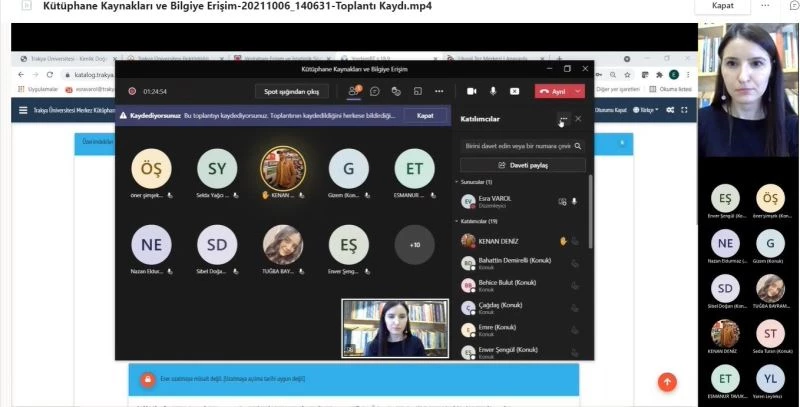 Trakya Üniversitesi Kütüphane ve Dokümantasyon Daire Başkanlığı, kütüphane ve kaynaklarının daha etkin kullanımını sağlamak amacıyla “Kütüphane Kaynakları ve Bilgiye Erişim” başlıklı bir webinar düzenledi.