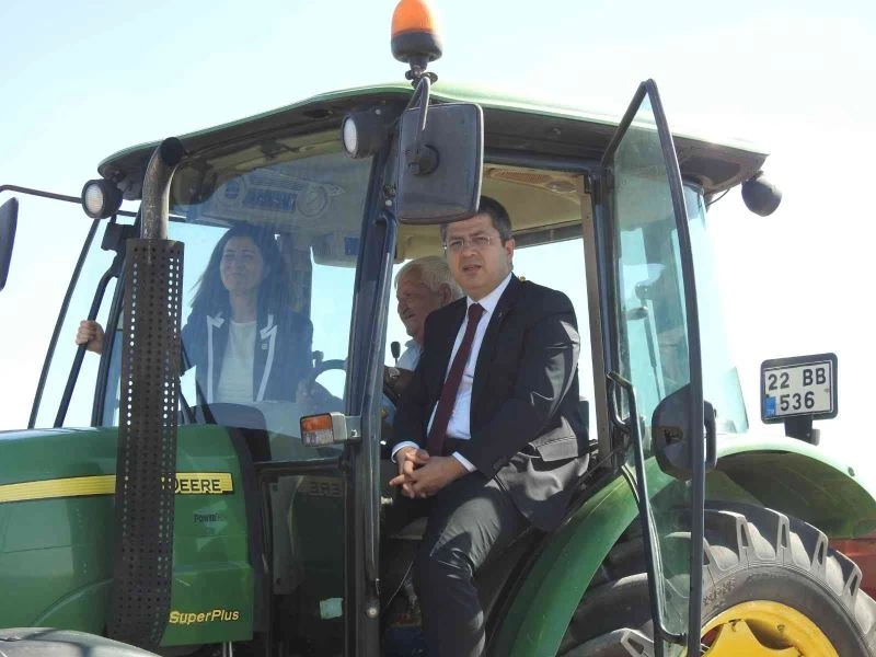 Tohumların dağıtılmasının ardından traktöre binen Vali Kırbıyık ilk kanola ekimini yaptı.