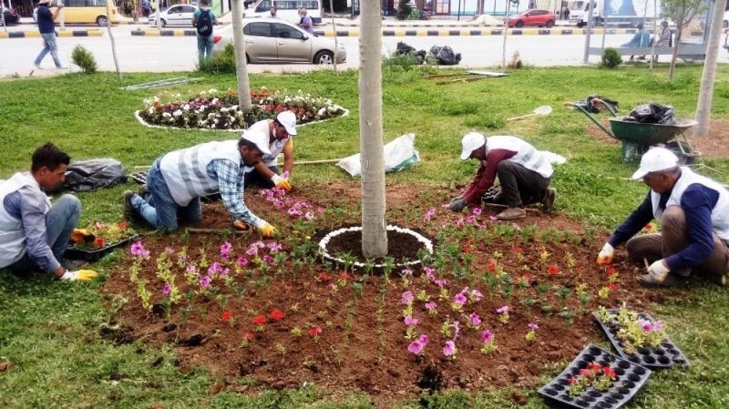 Van’ın Edremit Belediyesi; park, refüj ve yeşil alanlara çiçek ekmeye başladı.