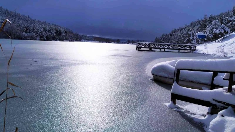 Karabük’ün Eflani ilçesinde kar yağışının ardından etkili olan soğuk hava nedeniyle ilçede yer alan göletlerin yüzeyleri buz tuttu.