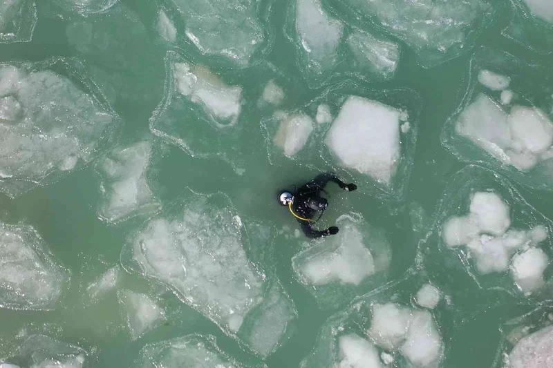 Eğirdir Gölü’nde sıfırın altında 17 derecede buzları kırıp dalış yaptılar