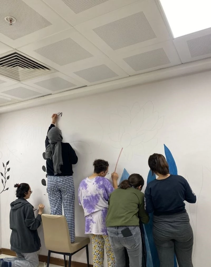 DÜZCE – Raziye Begüm Sultan Yurdu’nda bulunan resim atölyesinin duvarlarını öğrenciler kendi isteklerine göre boyadı.
