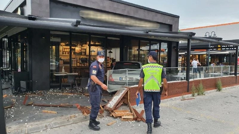 Balıkesir’in Edremit ilçesinde fren yerine gaza basan ehliyetsiz sürücünün kullandığı araç kahve satışı yapan işletmenin bahçesine girdi. Kazada 2 kişi hafif yaralandı.