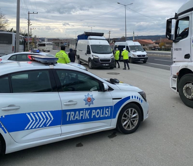 Ticari araçlar için kış lastiği uygulamasının başlamasıyla birlikte, Boludağı’nda trafik ekipleri uygulama yaptı.