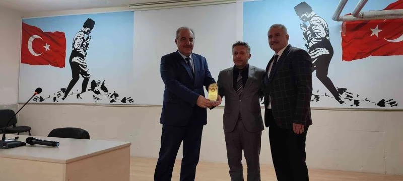 Etkinlik sonunda Yazıkonak Belde Belediye Başkanı Hatif Çadırcı tarafından İktisadi ve İdari Bilimler Dekanı Prof. Dr. Kenan Peker’e plaket takdim edildi.