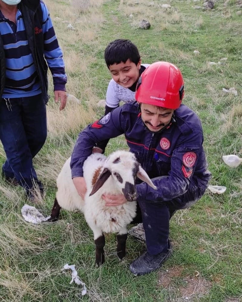 Elazığ’da kuyuya düşen kuzu, itfaiye ekipleri tarafından halat yardımıyla kurtarıldı.