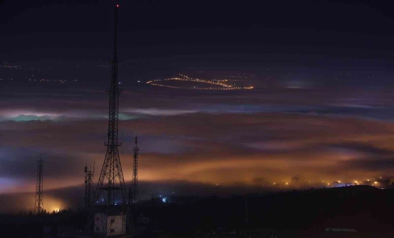 Elazığ kent geneli sis denizinde kaybolurken, sisin gece ışıklarıyla birlikte görünüşü görsel şölen oluşturdu.