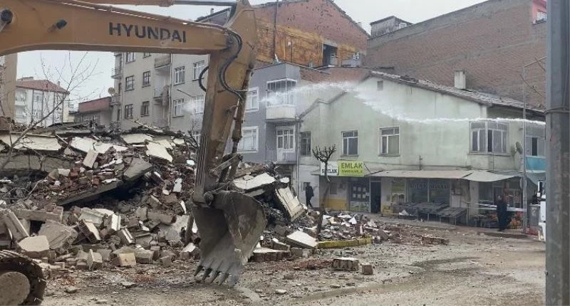 Ekiplerce yapılan incelemenin ardından binanın yıkımına devam edildi.