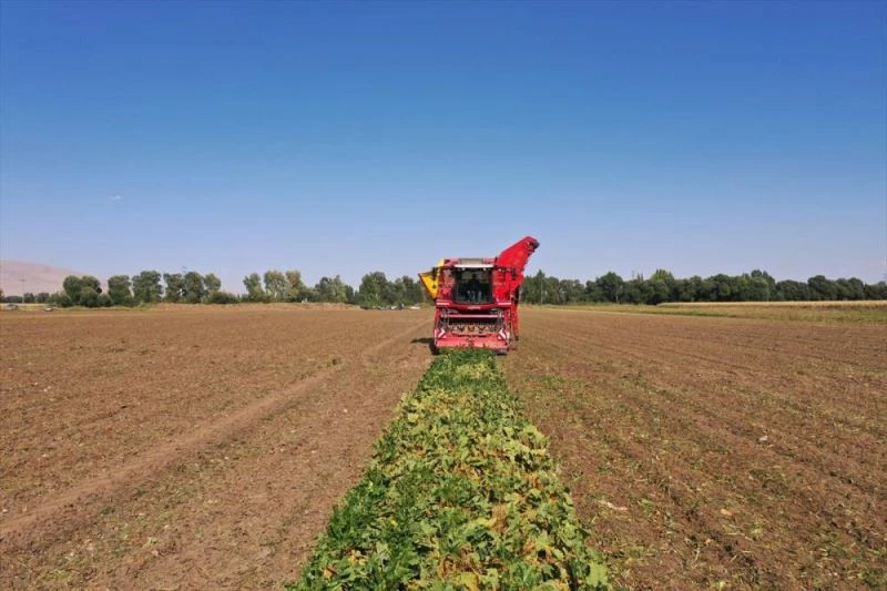 İlçede ekili arazilerdeki en önemli tarım ürünleri arasında yer alan şeker pancarı, hasat edilerek fabrikalara gönderiliyor.