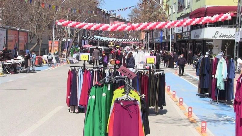 Kahramanmaraş Elbistan Belediyesi'nin Ahmet Karacabey Caddesi'nde gerçekleştirdiği proje kapsamında trafiğe kapatılan cadde balon ve bayraklarla süslendi.