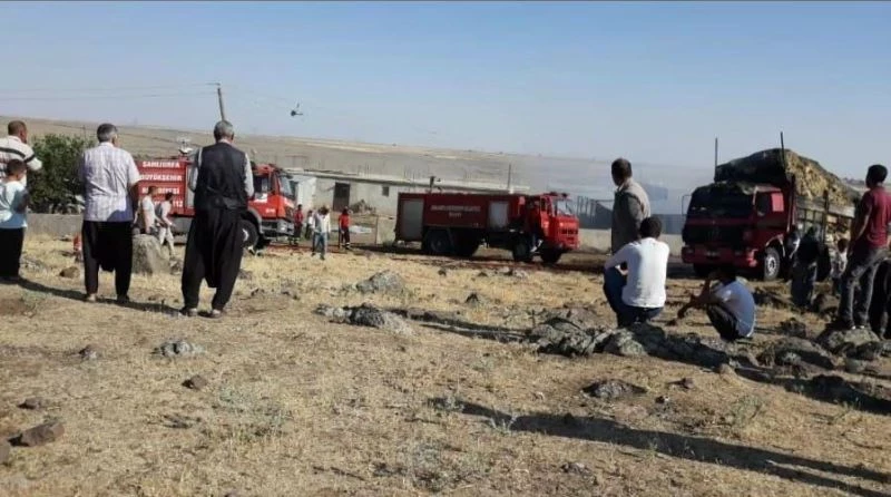 Şanlıurfa’nın Siverek ilçesinde elektrik tellerine temas eden saman yüklü kamyon alev alev yandı.