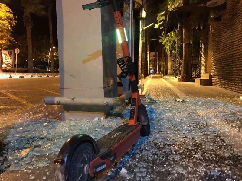 Olay, Marmaris ilçesi Atatürk Caddesi üzerinde gece 03.00 sıralarında meydana geldi. Edinilen bilgiye göre M.T. isimli bir kişi, yaya kaldırımında elektrikli scooterını çalışmak istedi. O esnada scooterın aniden hareket etmesi üzerine hakimiyetini kaybeden scooter sürücüsü M.T., minibüs durağına çarptı. Çarpmanın etkisiyle durağın camları patlarken, kazada M.T. yaralandı. Olayı gören vatandaşlar durumu 112 Acil Çağrı Merkezi’ne bildirdi. İhbar üzerine bölgeye sağlık ve polis ekipleri sevk edildi. Kısa sürede bölgeye gelen sağlık ekipleri yaralı M.T.’yi ilk müdahalenin ardından ambulansla hastaneye kaldırdı. Scooter sürücüsü M.T.’nin hayati tehlikesinin bulunmadığı öğrenilirken, kaza ile ilgili inceleme başlatıldı.