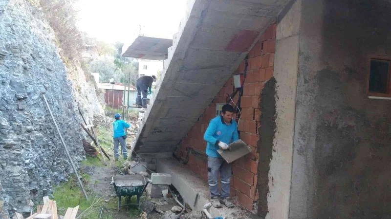 Alanya Belediyesi Elikesik Mahallesi’nde bir engelli vatandaşın daha yüzü güldü. Alanya Belediye Başkanı Adem Murat Yücel, Elikesik Mahallesi’nde yaşayan engelli vatandaş Feyza Kızıltaş’ın karkas halindeki evinin yapılması için talimat verdi. Talimat üzerine Alanya Belediyesi ekipleri çalışma başlattı. Engelli vatandaşın komşuları, Feyza Kızıltaş’ın kendi imkanları ve bazı yardımseverlerin katkıları ile ancak karkası yaptırabildiğini belirterek, belediyeye başvuruda bulunduklarını söyledi. Ekipler, sıva çalışmalarıyla evin yapımına başladı.