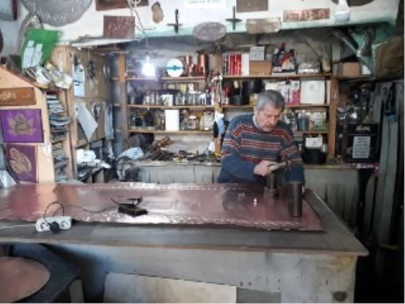 Emekli öğretmen 41 senedir bakırı işleyerek eserler ortaya çıkarıyor