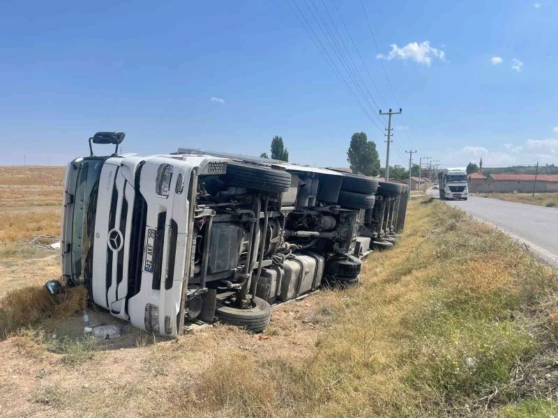 Afyonkarahisar’da kontrolden çıkan tuz yüklü tır tarım arazisine devrildi, ölen ya da yaralananın olmadığı olayda tonlarca tuz ziyan oldu.