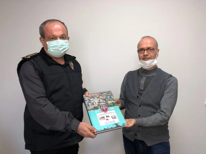 Ziyarette Emniyet Müdürü Mustafa Aydın, İHA Konya Bölge Müdürü Kenan Arvas’a Konya Emniyet Müdürlüğü tarafından hazırlanan “Basında Biz” kitabını hediye etti.