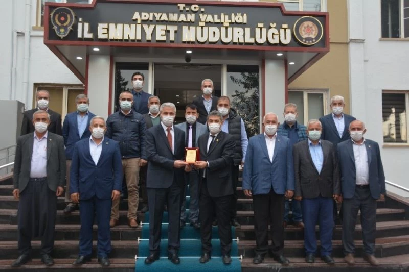 Başkan Geylani Taş ve beraberindeki muhtarlar daha sonra Adıyaman’a geldiği günden bu güne başarılı çalışmalar gerçekleştiren Emniyet Müdürü İbrahim Ergüder’e, teşekkür plaketi verildi.
